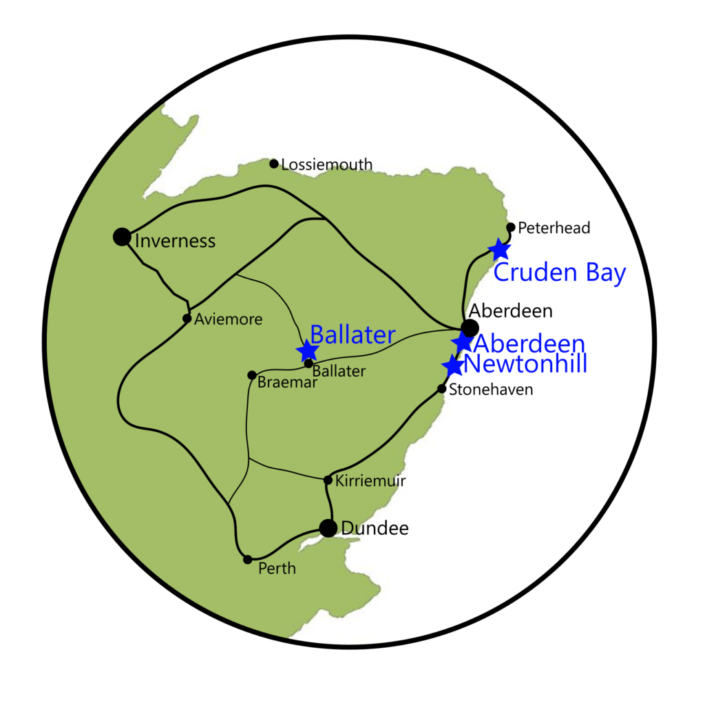 - Sea cliffs south of Aberdeen at Cove and Newtonhill.